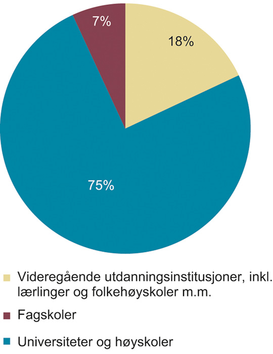 Universitetene og høyskolene skal sørge for at samfunnet og arbeidslivet har tilgang på kunnskap og kompetanse av høy kvalitet og relevans, og skal gjennom det bidra til utvikling og omstilling. Staten har ansvaret for universitetene og høyskolene, som forvaltningsmessig er direkte underlagt Kunnskapsdepartementet. Departementet styrer sektoren gjennom lover og forskrifter, organisering og finansiering, etatsstyring og styringsdialog, og analyse, statistikk og undersøkelser (Hægeland, 2015). Kunnskapsdepartementet har stilt opp noen overordnende mål for sektoren og disse konkretiseres i årlige tildelingsbrev. Tradisjonelt står faglig og institusjonell autonomi sterkt. Denne styringsideologien baserer seg på at universitetene og høyskolene selv har bedre innsikt i driften av et lærested enn det myndighetene har (NOU 2016: 3). I europeisk sammenheng har de norske institusjonene høy grad av faglig autonomi, men scorer lavt på finansiell autonomi blant annet fordi de ikke kan låne penger eller bestemme selv når de vil ta skolepenger (Hægeland, 2015). Institusjonene finansieres i stor grad over statsbudsjettet og staten har derfor et legitimt behov for styring og for å ivareta nasjonale hensyn og samordning. I de senere årene har det kommet tydeligere mål for sektoren knyttet til et resultatbasert finansieringssystem. Siden 2017 har Kunnskapsdepartementet inngått utviklingsavtaler med samtlige institusjoner. Disse skal komplementere mål- og resultatstyringen i finansieringssystemet, og bidra til tydeligere institusjonsprofiler og bedre arbeidsdeling i sektoren (Kunnskapsdepartementet, 2017c).