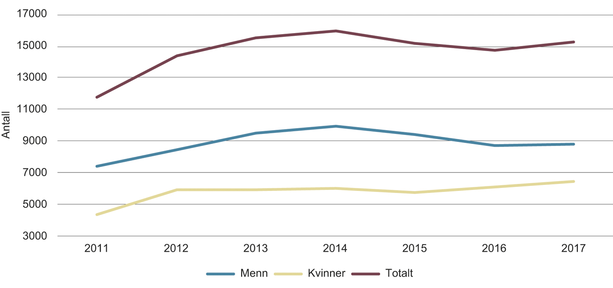 Figur 11.2 Studenter i fagskoleutdanning, etter kjønn, 2011–2017