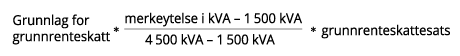 Et alternativ som kunne redusere terskeleffekten er en gradert, økende innfasing av grunnrenteskatt for kraftverk over en ny, lav nedre grense. Dette kan oppnås ved en lineær innfasing mellom to nivåer, eksempelvis 1 500 kVA og 4 500 kVA. En lineær innfasing mellom disse nivåene tilsier at et kraftverk under 1 500 kVA ikke ilegges grunnrenteskatt, og verk over 4 500 kVA ilegges full grunnrenteskattesats. Verk i intervallet 1 500 – 4 500 kVA får sin grunnrenteskatt beregnet som følger: