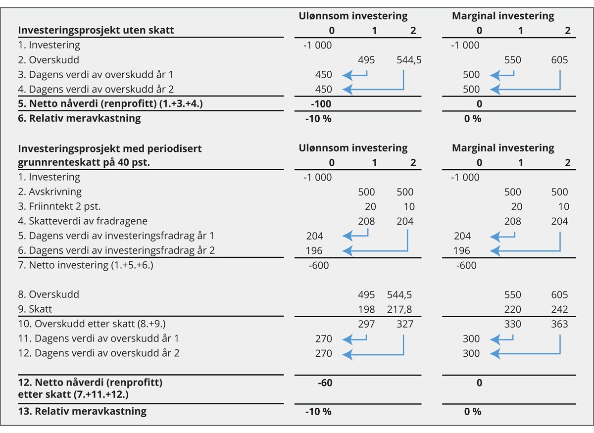 Tabell 7.1 Skisse av skattegrunnlaget for en periodisert, overskuddsbasert grunnrenteskatt