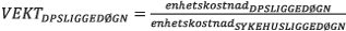 Innen psykisk helsevern vil enhetskostnad for liggedøgn på DPS være lavere enn på sykehus og dette er vektet inn som: