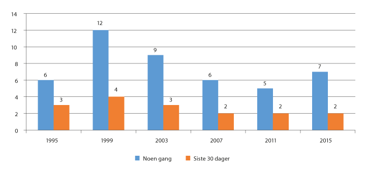 Australian Institute of Health and Welfare (2017) «key findings» (juni 2017), tabell 27: «Average age of initiation of lifetime drug use, people aged 14 years and older, 1995 to 2016 (years)».