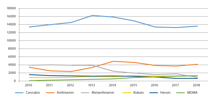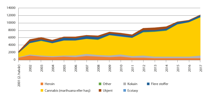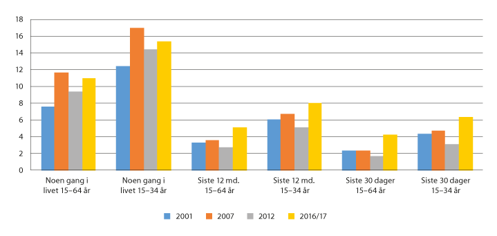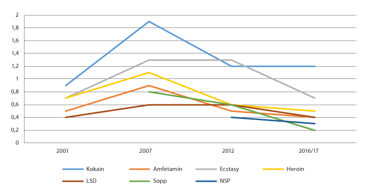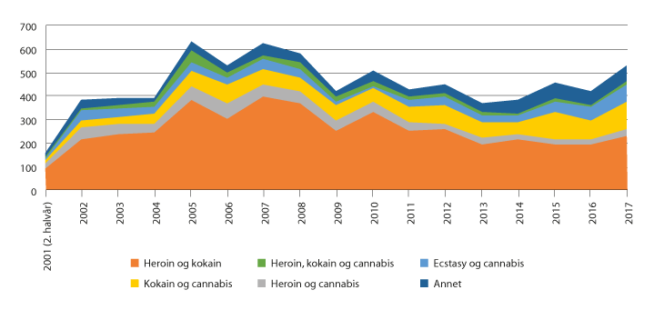 Se også omtale av en lignende tidligere undersøkelse i EMCDDA (2017b) s. 22–23, og Bretteville-Jensen (2019b) s. 222–223.