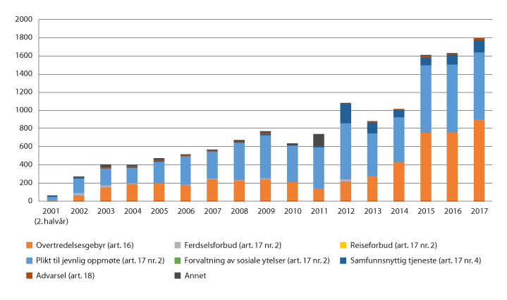 Perioden 1965–1984 ble dermed en fase preget av straffeskjerpelser og kontrolltiltak.78 Den strafferettslige utviklingen i denne perioden står i en særstilling i både norsk og internasjonal målestokk.79 Det hersket en sterk tiltro til effekten av høye straffer, og avskrekkelse av dem som sto i fare for å begynne å bruke narkotika, særlig de unge, preget straffediskusjonene.