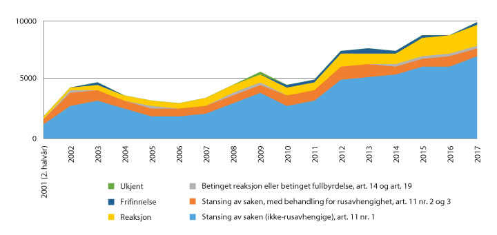 Mens straffelovgivningen i 1980- og 1990-årene hadde gått mest i straffeskjerpende retning, kan Straffelovkommisjonens80 innstilling i 2002 betraktes som et tydelig brudd i norsk narkotikakontrollpolitikk. For første gang fremmet et offentlig utvalg forslag til lovendringer for å avkriminalisere bruk av narkotika, samt erverv og besittelse av narkotika til egen bruk.81