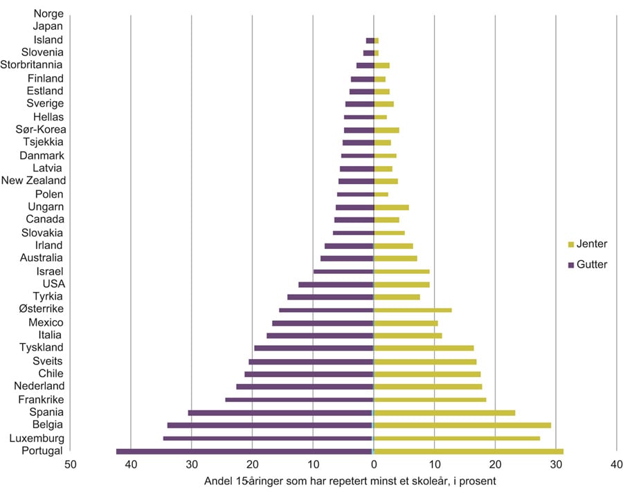 Hvordan skolene følger opp svakt presterende elever har særlig betydning for gutter ettersom de er overrepresentert i gruppen med svake ferdigheter mot slutten av grunnskolen. I alle OECD-land utenom Norge og Japan repeterer noen elever skoleår dersom de ikke følger normal progresjon. Forskning fra USA finner at repetisjon av skoleår kan ha positiv effekt dersom det skjer når elevene er yngre, mens det gir negative effekter senere i utdanningsløpet. Det er lite som tyder på at dette i større grad gagner guttene.