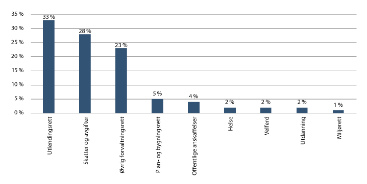 Til sammen er ca. 2000 tvister klassifisert som offentligrettslige. Basert på Regjeringsadvokaten, Årsrapport 2018, kan det legges til grunn at ca. 800 av disse gjelder det statlige forvaltningsnivået.