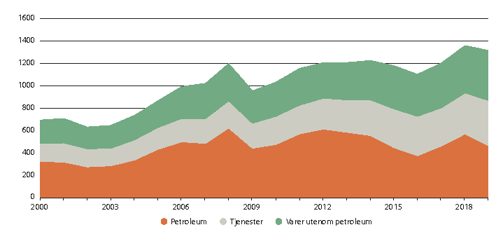 Tallene inkluderer ikke boligtjenester, tall for sokkelen og Svalbard. Tallene kan derfor ikke uten videre sammenlignes med nasjonalregnskapstallene.
