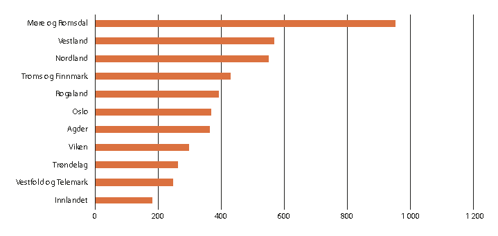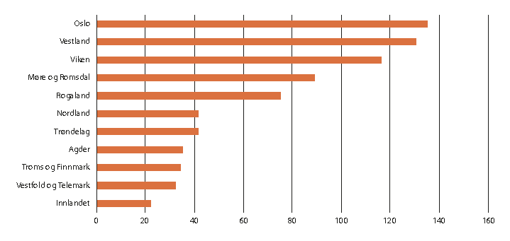 Kilde: Statistisk sentralbyrå (tabell 11713). Beregninger: Kommunal- og moderniseringsdepartementet