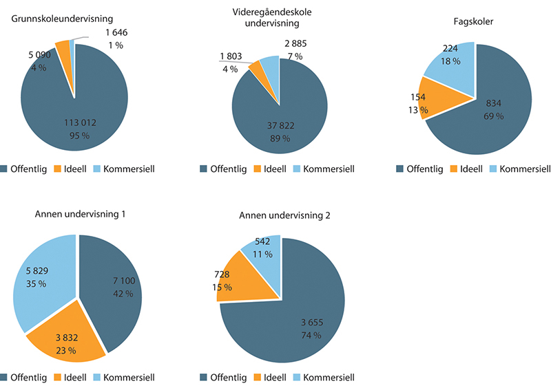 Det er heller ikke skilt ut i statistikken de virksomheter som ikke mottar offentlig finansiering. For eksempel innenfor spesialisthelsetjenesten er det flere store aktører som ikke mottar noe offentlig støtte.1