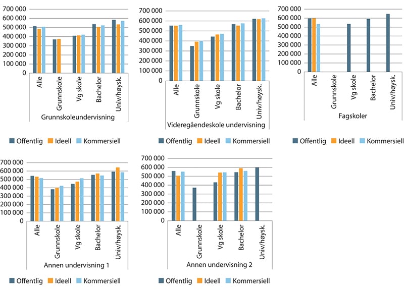 Ansatte innen kommersielle sykehus er såpass få at det her ikke finnes gode nok lønnsdata for alle utdanningsnivå.