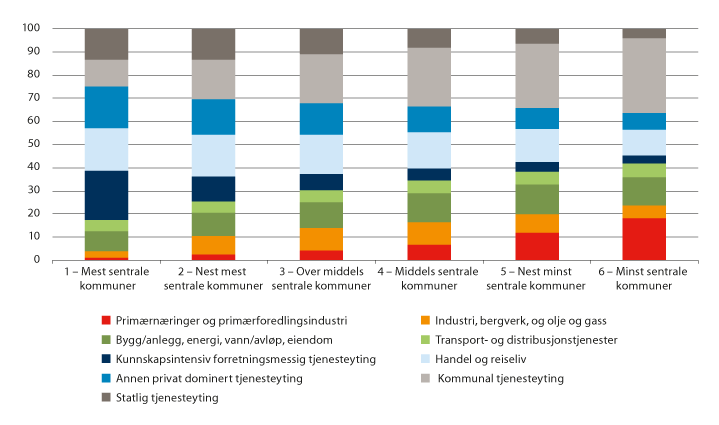 Figur 2.1 Kommuner gruppert etter sentralitet