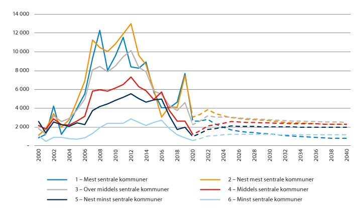 Tallene for 2020 og 2021 er spesielt lave grunnet antakelser om lavere nettoinnvandring grunnet covid-19. Fra 2022 er nivåene tilbake på den langsiktige trenden.