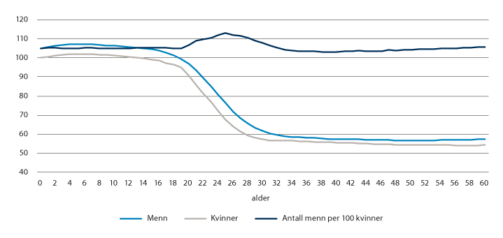2.3.3 Færre unge i distriktene gir lavere utflytting framover