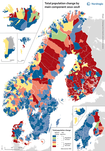 Befolkningsveksten i alle landene har de siste årene i stor grad vært drevet av innvandringsoverskudd. Imidlertid har ikke den høye innvandringen vært tilstrekkelig til å sikre befolkningsvekst over alt. Mange distriktskommuner har opplevd nedgang i folketallet, og særlig gjelder dette en høy andel kommuner i Finland og Nord-Sverige. Befolkningsveksten har i stor grad funnet sted i urbane strøk, og økt sentralisering av befolkningen har således vært et fellestrekk for de nordiske landene.