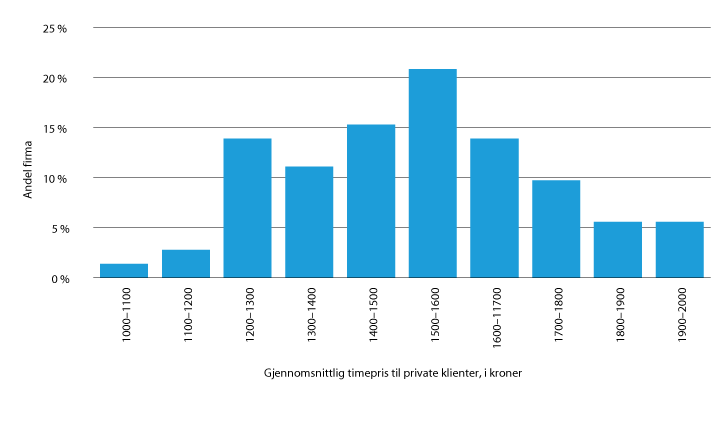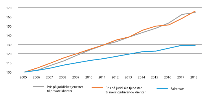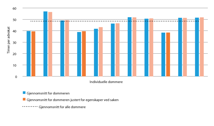 Menon-publikasjon nr. 5/2019: Analyse av stykkpris og medgått tid for utbetaling av salær til advokater, side 44.