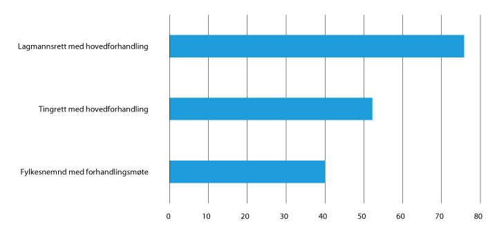 Som det framgår av figur 21.1, utgjør utbetalinger til sakkyndige en overraskende stor andel av rettshjelpsbudsjettet, med i overkant av 75 millioner kroner i 2018. Domstolenes registre viser at 64 prosent av disse er knyttet til foreldretvister, mens 31 prosent er knyttet til barnevernssaker.