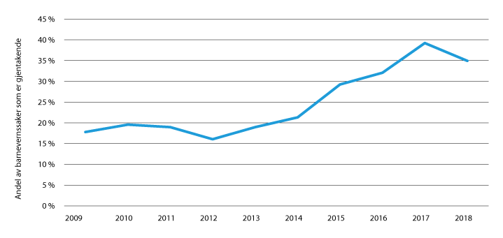I 2018 ble 35 prosent av de ordinære barnevernssakene for fylkesnemndene avgjort etter forenklet behandling. Nesten alle saker hvor barneverntjenesten mente barnet skulle tilbakeføres til foreldrene, ble behandlet forenklet. I tillegg ble 22 prosent av sakene hvor foreldrene krevde tilbakeføring, men barneverntjenesten motsatte seg dette, behandlet etter tvungen forenklet behandling. Av slike saker ble over 70 prosent anket til tingretten.11