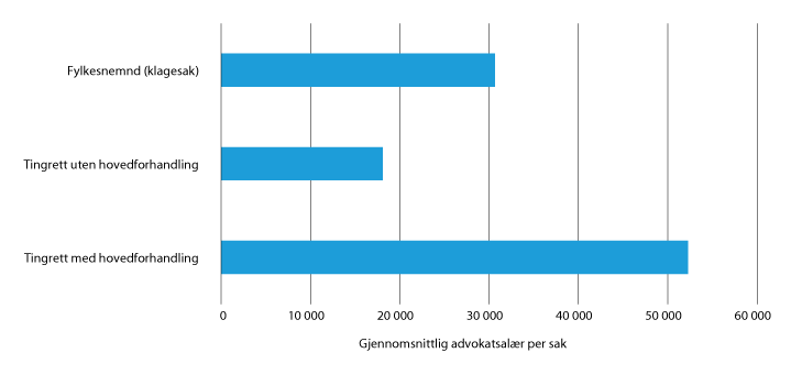 Etter dagens regelverk har alle privatpersoner som er part i en barnevernssak for fylkesnemnda eller domstolene, krav på rettslig bistand uten egenbetaling, uavhengig av egen økonomisk situasjon.26 Barneverntjenesten i den enkelte kommune betaler sine egne advokatutgifter, uavhengig av om kommunen taper eller vinner saken. Bestemmelsene om sakskostnader i tvisteloven kapittel 20 brukes dermed ikke i barnevernssaker, og størrelsen på salæret til den enkelte prosessfullmektig er normalt ikke en problemstilling som andre parter og prosessfullmektiger involverer seg i.