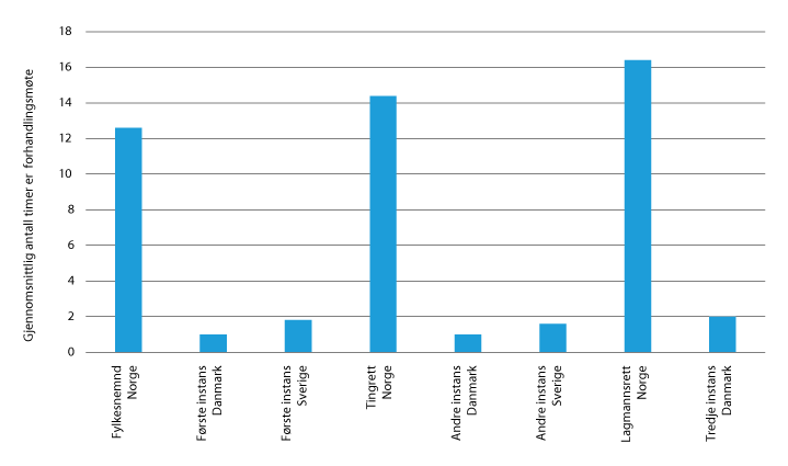 Selv om det ikke er aktuelt å svekke rettssikkerheten til hverken barn eller foreldre, kan det være grunn til å vurdere om barnevernsprosessen og rettshjelpsreglene bidrar til at rettssikkerheten ivaretas på en effektiv måte. Som vi kommer tilbake til i punkt 27.4, er det til dels store forskjeller mellom Norge og andre nordiske land knyttet til saksbehandlingen i barnevernssaker. Blant annet tar behandlingen av barnevernssaker i norske fylkesnemnder og domstoler flere ganger så langt tid og krever langt mer ressurser enn tilsvarende saker i Sverige, Danmark og Finland. EMD har i mindre grad rettet kritikk mot behandlingen av barnevernssaker i disse landene, og konfliktnivået knyttet til barnevernsprosessene i disse landene ser også ut til å være langt lavere enn i Norge. Det er dermed ikke gitt at redusert tids- og ressursbruk i barnevernssakene vil føre til redusert rettssikkerhet, eller til at partenes tillit til prosessen reduseres.