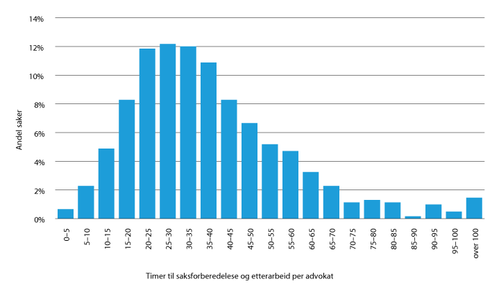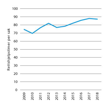 Gjennomsnittlig hovedforhandlingstid i disse sakene var i perioden 2016–2018 på litt over 5 timer.
