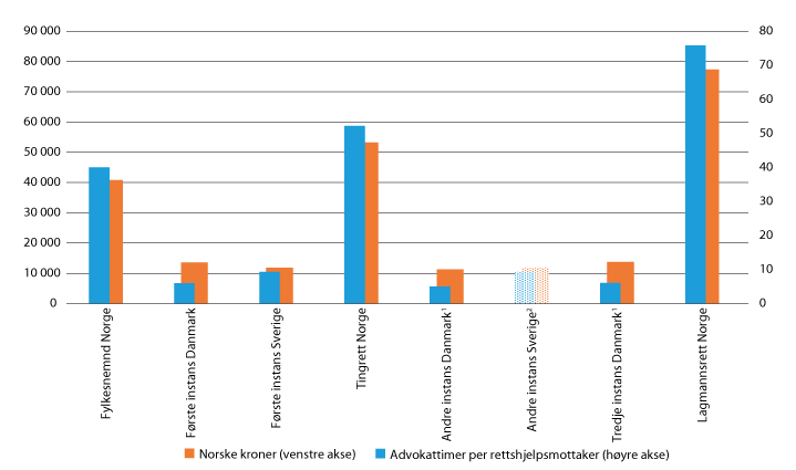 Utvalget har i kapittel 9 anbefalt at bestemmelsene om rettshjelp i barnevernssaker og andre saker om offentlige tvangsinngrep skal skilles ut fra rettshjelpsloven og tas inn i den aktuelle særlovgivningen. Selv om sakene skal skilles ut, har utvalget likevel brukt mye tid på å vurdere om rettshjelpsordningen fungerer optimalt i barnevernssaker. 46 prosent av utgiftene etter rettshjelpsloven gikk i 2018 til rettshjelp i barnevernssaker.3 For å sørge for at rettshjelpsmidlene utnyttes effektivt, er det derfor viktig å analysere kostnadsdriverne. Ettersom saksbehandlingen i Norge skiller seg mye fra saksbehandlingen i andre nordiske land, har utvalget også valgt å vurdere endringer i saksbehandlingsreglene, noe som igjen vil kunne få betydning for kostnadene.
