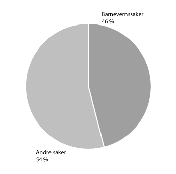 Selv om de færreste undersøkelsessaker i barnevernet resulterer i tvangstiltak, er barnevernssaker likevel den formen for offentlige tvangsinngrep som dominerer norske domstoler og domstolslignende organer. I 2017 utgjorde de 93 prosent av alle sakene for fylkesnemndene. Overprøvinger av barnevernssakene utgjorde 83 prosent av alle sakene som gjaldt offentlige tvangsinngrep i norske tingretter, og 95 prosent av rettshjelpsutgiftene til disse sakene. Barnevernssakene utgjorde samme år 16 prosent av alle tingrettssaker med rettshjelp og hele 47 prosent av salærutgiftene i tingrettene. Når tvangssakene skal vurderes i et rettshjelpsperspektiv, er det derfor naturlig å ta utgangspunkt i barnevernssakene. Andre offentlige tvangsinngrep enn barnevern vil bli drøftet i kapittel 28. Flere av problemstillingene og anbefalingene vil imidlertid være felles for alle saker om offentlige tvangsinngrep.