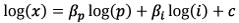 hvor x er sannsynligheten for å benytte seg av advokat, p er pris, i er bruttoinntekt og