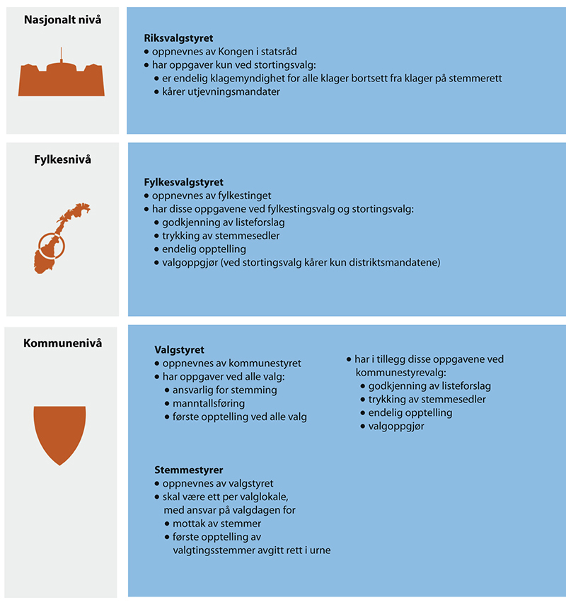 «Valghåndbok: Oversikt over regelverk som gjelder ved gjennomføring av valg» (Kommunal- og moderniseringsdepartementet, 2019), punkt 10.8.