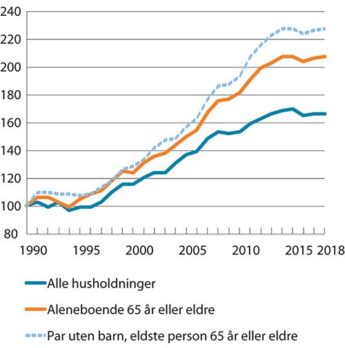 Kilde: Inntektsstatistikk for husholdninger (1993–2018), Statistisk sentralbyrå.