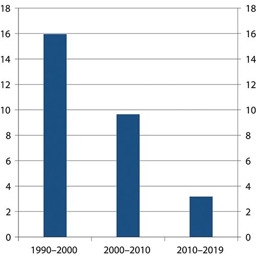 Arbeidsinnvandringen har avtatt de senere årene, av flere årsaker. Oljeprisfall og den særnorske nedgangskonjunkturen i 2014–2016 innebar færre jobber, svakere krone og en reduksjon i differansen mellom lønnsnivået i Norge og flere østeuropeiske land. Før koronapandemien var den økonomiske veksten sterk i mange østeuropeiske land, og det ventes at den økonomiske veksten vil være høyere i disse landene også i årene framover.
