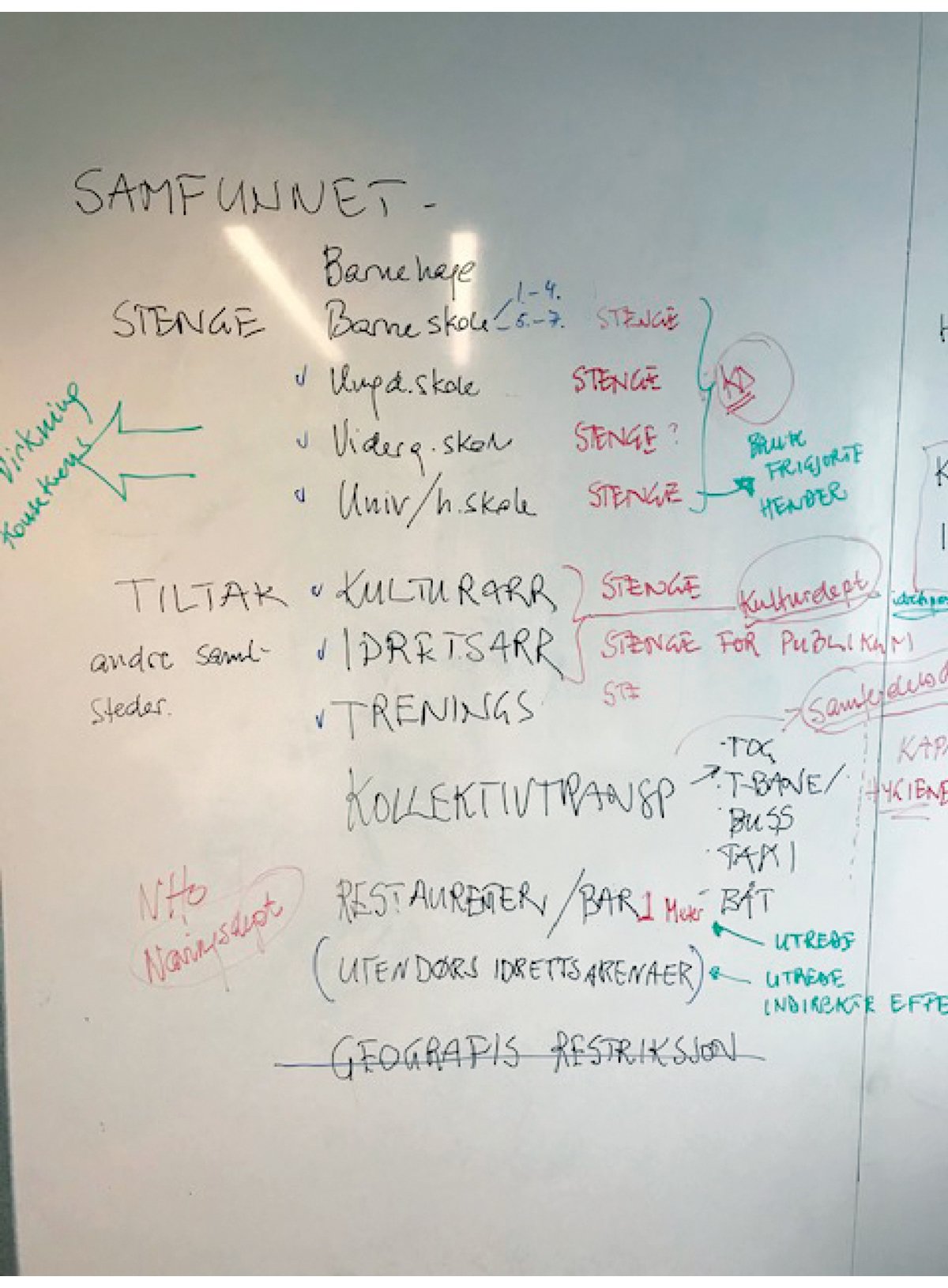 Pakken av tiltak som ble satt inn 12. mars var dårlig utredet og dårlig forberedt. Prosessen og vurderingene fram til beslutningen er heller ikke skriftlig dokumentert. Listen over hvilke virksomheter som skulle stenges, ble utarbeidet i løpet av noen få timer og var klar først én time før tiltakene ble offentliggjort.