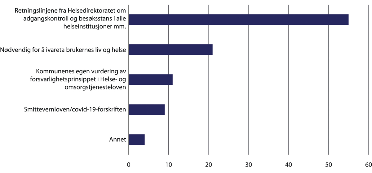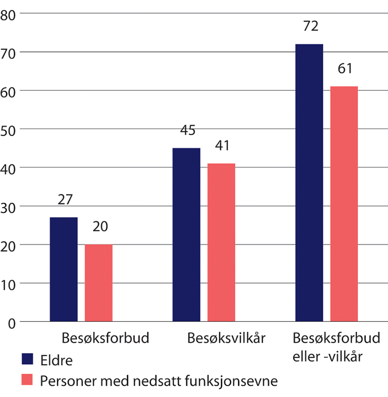 Det var litt over halvparten av kommunene som innførte besøksforbud som hadde vurdert om innføringen av besøksforbud var i henhold til tvangsregelverket. Men samtidig var det svært få kommuner som oppga at de faktisk fattet tvangsvedtak knyttet til besøksrestriksjoner for beboere.