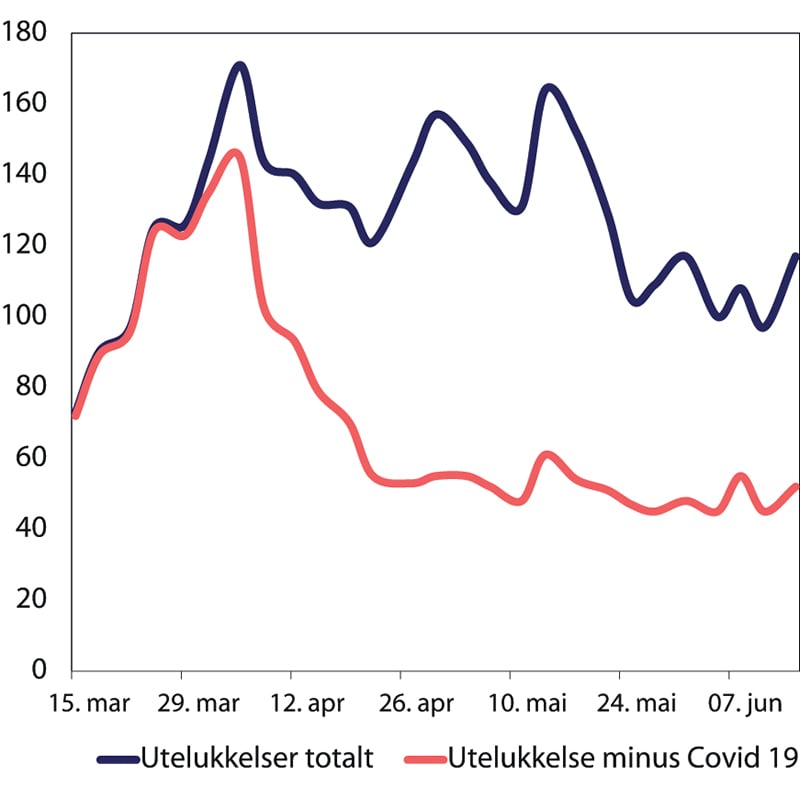 Dette er også i overensstemmelse med det som ble rapportert til Justis- og beredskapsdepartementet underveis i krisen. For eksempel i situasjonsrapport nr. 5 av 6. april 2020 framgår det at den registrerte kriminaliteten ligger ca. 20 prosent under det normale, og at antallet pågripelser er halvert siden 12. mars. I et notat fra Politidirektoratet til Justis- og beredskapsdepartementet av 31. mars 2020 framgår det at tallet på anmeldelser i uke 13 var 28,6 prosent lavere enn i uke 10.