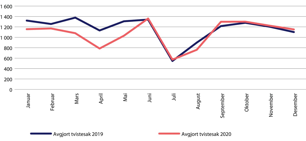 For sivile saker var det en økning på om lag 700 saker i samme periode.