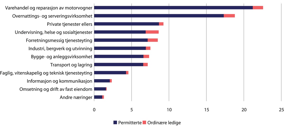 I november 2020 var 0,7 prosent av alle lærlinger permittert (Bjørnset 2021). Innenfor restaurant- og matfag var andelen permitterte langt høyere, med 12 prosent.