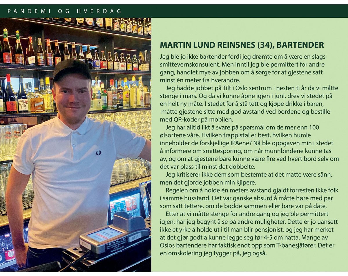 I løpet av høsten 2020 måtte serveringssteder i Oslo, Bergen og flere mindre kommuner igjen stenge eller begrense tilbudet på grunn av lokale tiltak. Det bidro til en ny økning i ledigheten. En analyse fra NAV viser at 15 000 av dem som ble arbeidsledige i den første koronabølgen, ble ledige på nytt i november (NAV 2020b). En tredel av disse er bosatt i Oslo.