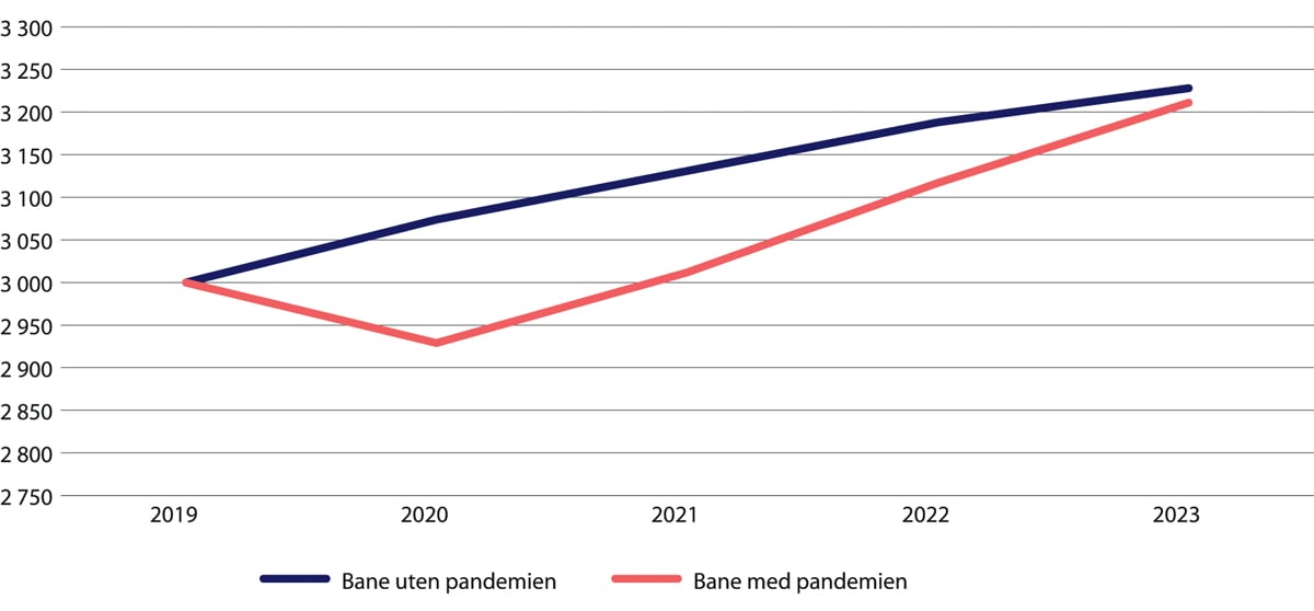Vår drøfting av konsekvenser er i hovedsak basert på bildet slik det så ut ved inngangen til 2021. I tillegg gjør vi enkelte vurderinger av hvilke langsiktige konsekvenser pandemien kan forårsake.