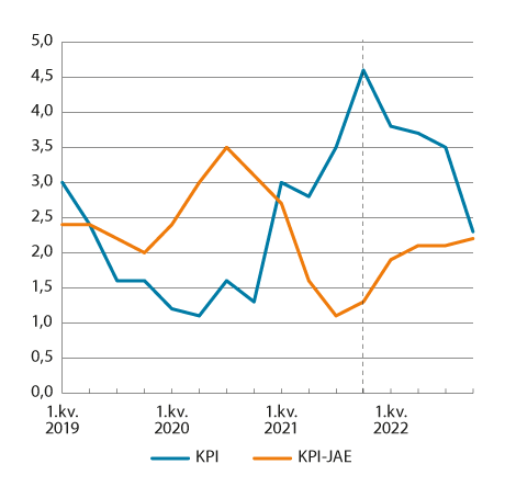 KPI justert for avgiftsendringer og uten energivarer (KPI-JAE) | 1,4 | 1,6 | 2,2 | 3,0 | 1,7 | 2,1 |