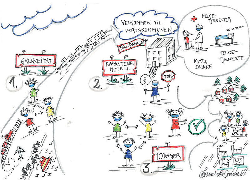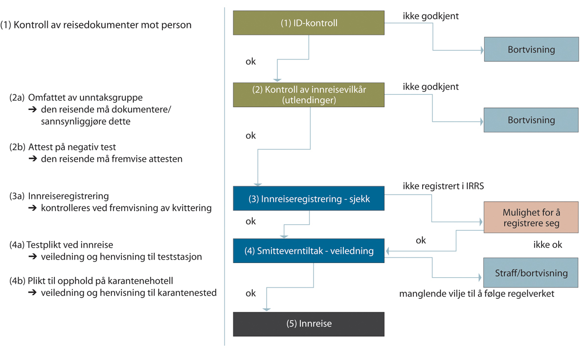 Figur 7.2 Prosessen i grensekontrollen – innreiserestriksjoner og karantenehotell.