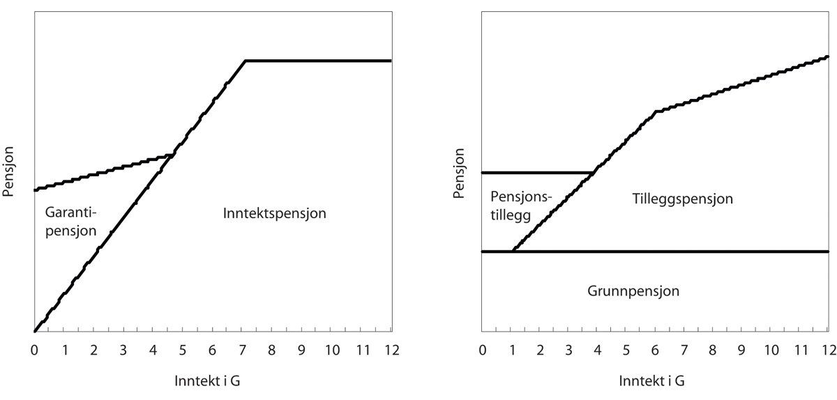5) Nivået på minstesikringen påvirker insentivene til arbeid. Eldre over en viss alder forventes ikke lenger å være selvforsørgende gjennom arbeid. Det er derfor i noen grad ikke det samme motsetningsforholdet mellom fordelingshensyn og hensynet til gode arbeidsinsentiver som gjør seg gjeldende for andre minsteytelser i folketrygden. På den andre siden vil høye minsteytelser svekke arbeidsinsentivene gjennom yrkeslivet. Et sosialt bærekraftig pensjonssystem må ikke bare sikre at minsteytelsene er på et akseptabelt nivå; det må også sikre at de som har vært i arbeid får uttelling for dette i form av høyere pensjon enn de som ikke har vært i arbeid. Et sentralt argument for å innføre en inntektspensjon som gir uttelling fra første krone, var å bli kvitt den såkalte «minstepensjonsfella» i det gamle pensjonssystemet. Den forholdsvis strenge avkortningen av garantipensjonen mot opptjent inntektspensjon betyr imidlertid at den reelle pensjonsmessige uttellingen ved økt arbeidsinnsats blir beskjeden for mange. I Sverige har dette hensynet fått stor plass i den offentlige debatten om minstepensjonens størrelse og innretning.14 I 2021 ble det innført en ny opptjeningskomponent i det svenske pensjonssystemet (et såkalt «inkomstpensionstillägg») som gir en viss kompensasjon til personer med lavere og midlere livsløpslønn for avtrapningen av garantipensjonen mot opptjent inntektspensjon (Ds 2020:7).