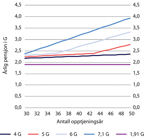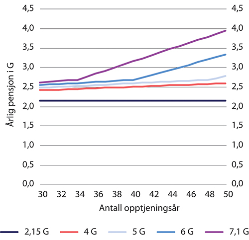 Pensjonsreformen gir mulighet til å opprettholde pensjonsnivåene gjennom å arbeide lenger, eller å gå av like tidlig som yngre årskull, men med lavere årlig pensjon. Det er imidlertid et sentralt mål å stimulere til lengre yrkeskarrierer. Reglene for regulering av minsteytelsene er imidlertid ikke tilpasset lengre yrkeskarrierer, jf. at Pensjonskommisjonen skriver at deres forslag vil gi «(…) om lag tilsvarende effekt av delingstallet for personer på garantipensjon som for personer med inntektspensjon ved pensjonering ved 67 år». Sammenlikningen er altså med yrkesaktive som tar ut pensjonen ved 67 år og ikke med pensjonsnivået til personer som helt eller delvis kompenserer for virkningen av levealdersjusteringen.