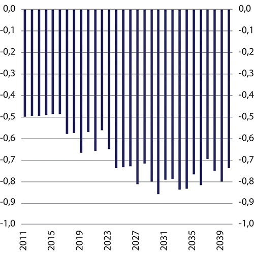 2014–2016 | -0,6 | -1,1 | -0,5 | -0,4 | |