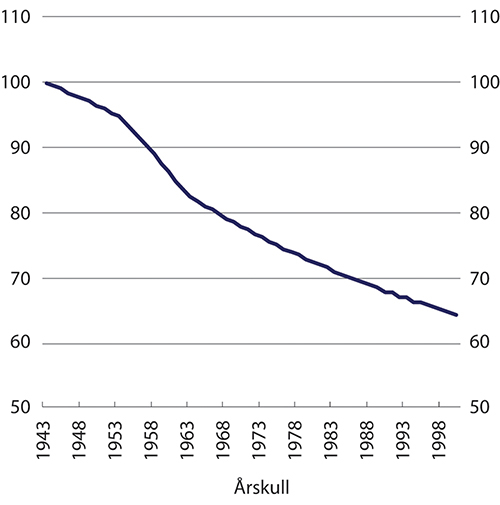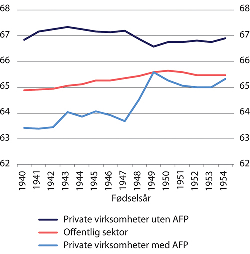 For å legge bedre til rette for at eldre arbeidstakere skulle stå lenger i arbeid, ble inntektsprøvingen av alderspensjonen helt opphevet for 67-åringer fra 2008. De påfølgende to årene ble inntektsprøvingen for 68- og 69-åringer også opphevet.2 I Ot.prp. nr. 12 (2007–2008) skriver departementet at endringen i avkortingsreglene var en forberedelse til pensjonsreformen ved at økt fleksibilitet stimulerer flere eldre til å stå lengre i arbeid. Brinch m.fl. (2017) fant at endringen for 67-åringene hadde en betydelig effekt på arbeidstilbudet til 66-åringene.