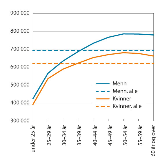 Dette og de følgende avsnittene presenterer utviklingstrekk i lønn i hovedsak basert på statistikk fra SSB klassifisert etter kjønn og andre kjennetegn. Lønnsstatistikken fra SSB er nærmere omtalt i vedlegg 2.