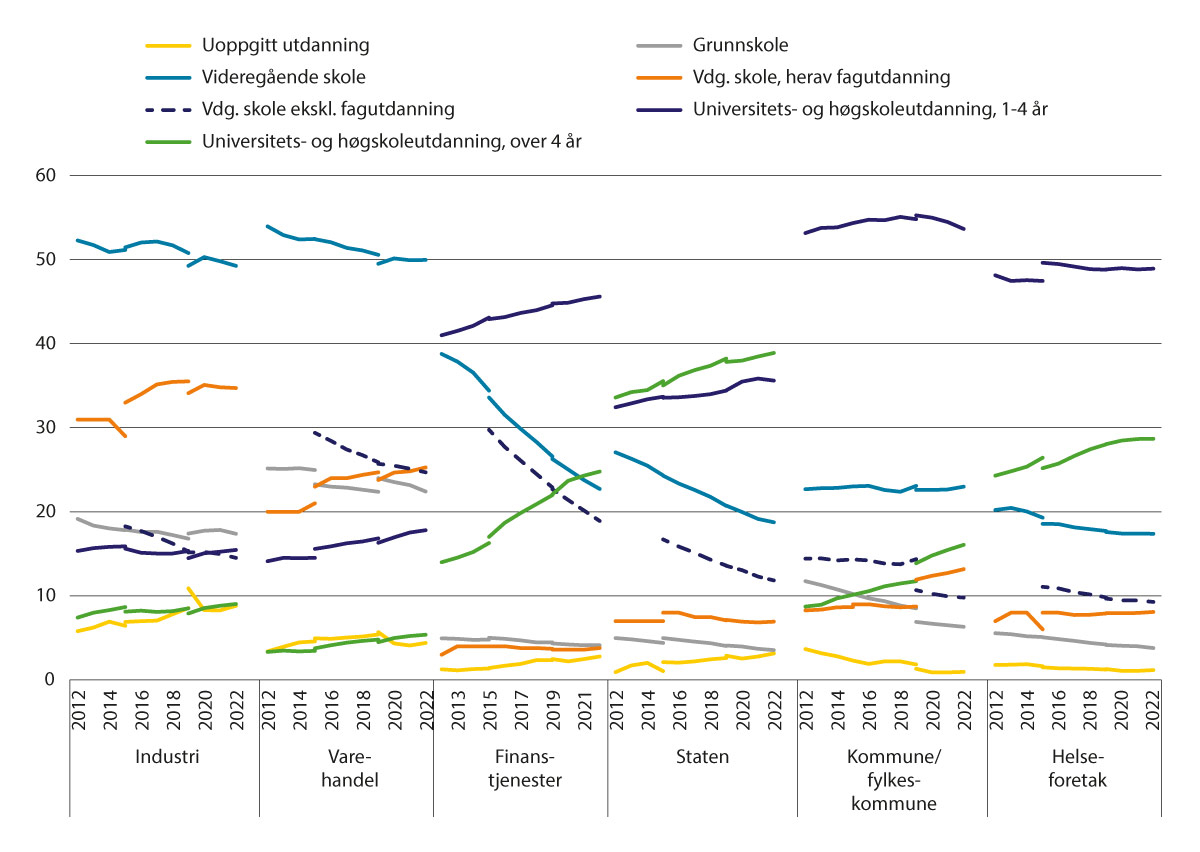 2 Fra 2016 basert på SSBs sektorgruppering. Omfatter statlig forvaltning (inkl. helseforetakene) og kommunal og fylkeskommunal forvaltning.