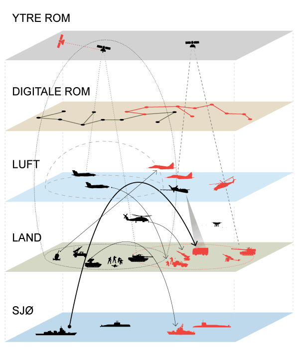 Norge må styrke sin evne til å operere i alle domener. Cyber er et domene som blir viktigere fremover. Evnen til samvirke nasjonalt og sammen med allierte i fellesoperasjoner på tvers av domenene er avgjørende for å styrke forsvarsevnen.