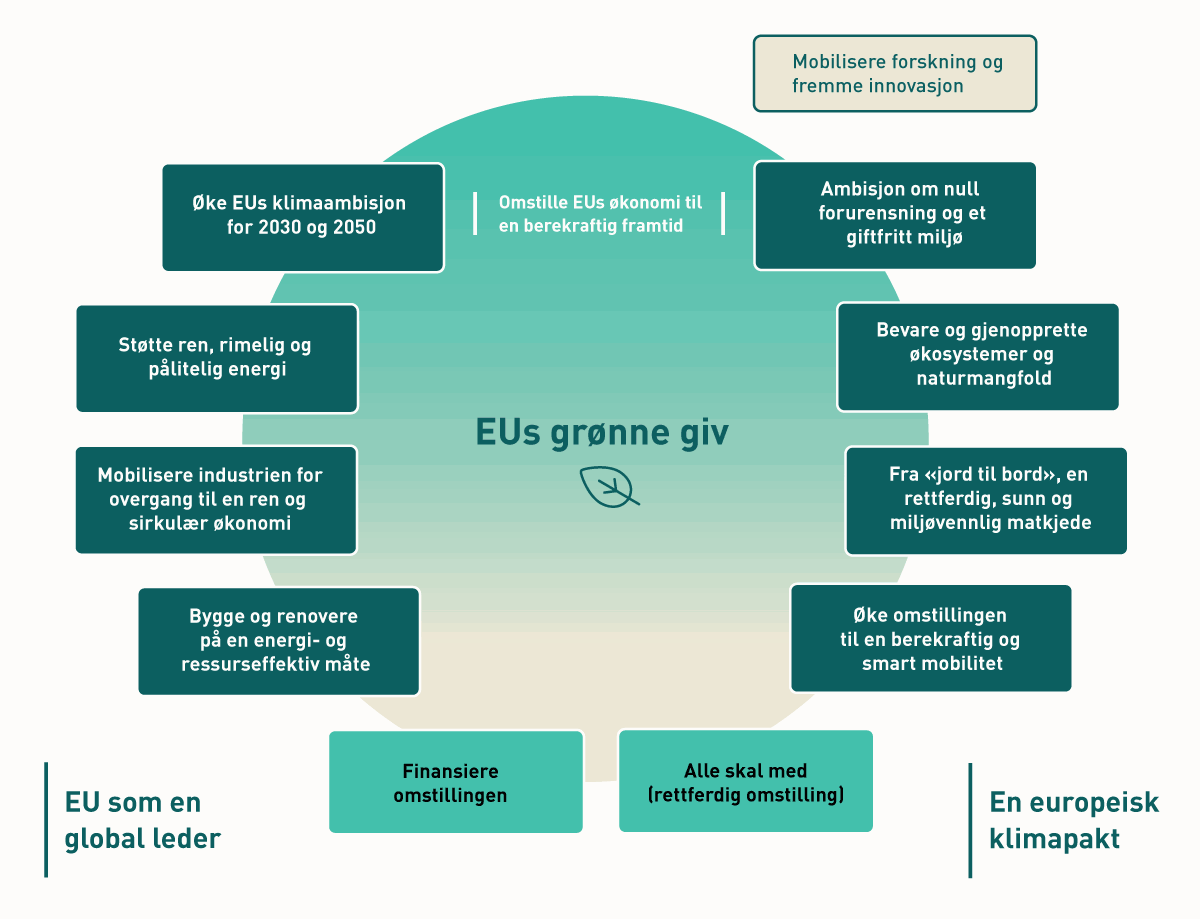 Europas grønne giv er en omfattende handlingsplan som skal løse utfordringer knyttet til klima og miljø på tvers av politikkområder og sektorer, uten at det går på bekostning av andre bærekraftsmål.