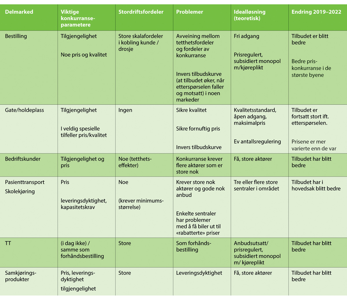 6.1 Drosjemarkedet består av flere delmarkeder med ulike egenskaper