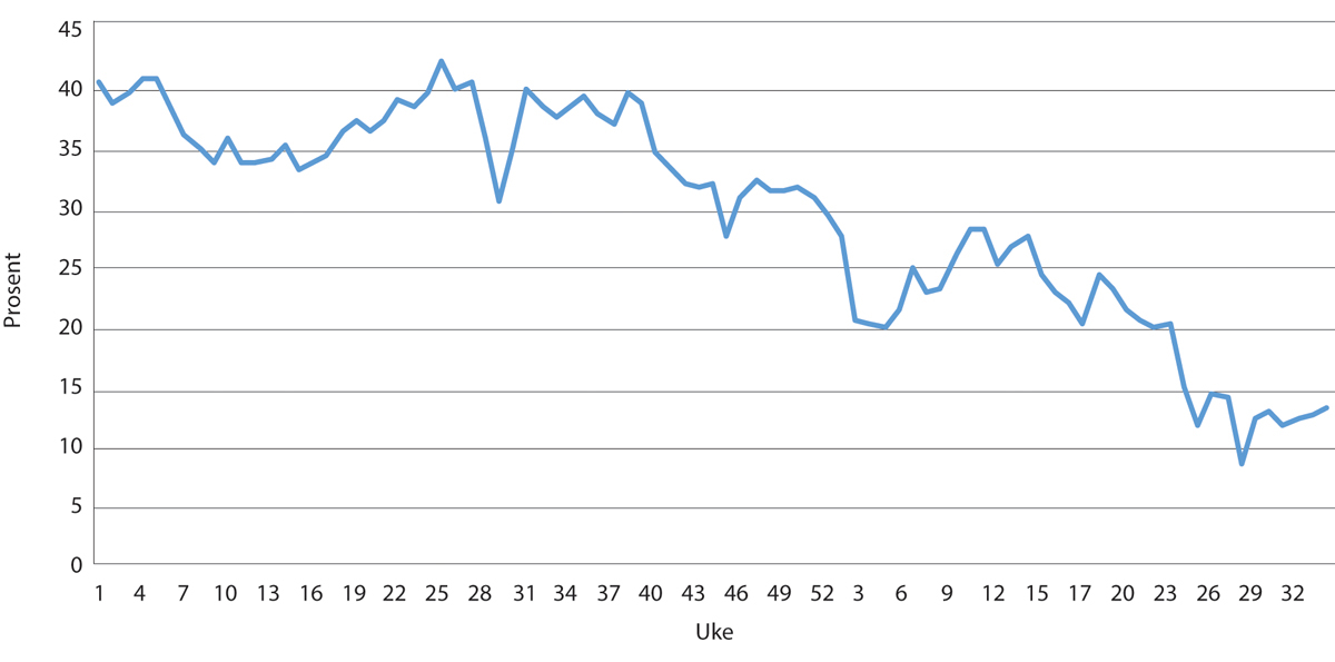 1 Historiske kraftpriser t.o.m. uke 35 i 2021.